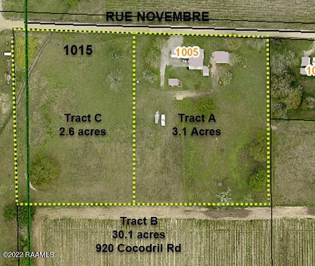 3.1 acres with 336 fronting Rue Novembre. Not in flood zone. Final price to be $20,000 per surveyed acre.
