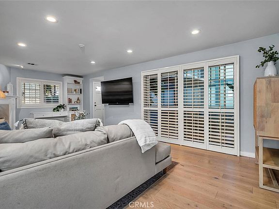 Discover this beautiful 3-bedroom, 2.5-bathroom end unit townhouse with a bonus room/office just a short stroll from the vibrant heart of Hollywood Riviera and one block away from the beach. Exuding a cool beach vibe and walkability that's second to none, this home offers a lifestyle you'll love. The living and dining spaces boast new hardwood floors, a remodeled fireplace, built-ins, fresh recessed lighting, and a stylish dining chandelier. Two balconies, one off the kitchen and one off the living room, offer space for the BBQ and to relax. The kitchen will satisfy any cook, inclusive of a new dishwasher and refrigerator, as well as a reverse osmosis drinking water system. The main-level bath features hardwood floors, a new sink & new toilet. The lower level den/office showcases hardwood floors and an attractive accent wall. On the top floor, you'll find a master bedroom with vaulted ceilings, custom built-ins in the walk in closet and ensuite featuring a new toilet, faucets, and a master shower head filter. The additional full bath features a spa tub with jets, a new toilet and fixtures. Also upstairs is the laundry area which offers a new washer and dryer, additional cabinets, fresh flooring, and a modern backsplash. In addition to the hardwood floors, the house features new carpeting, Other upgrades include a new staircase chandelier, all-new screens, an alarm system, and newer outdoor lighting fixtures. The garage has been thoughtfully organized with custom storage, slat walls, epoxy flooring, and new lighting. Don't miss this opportunity to own your coastal dream home. This LOCATION can't be beat!