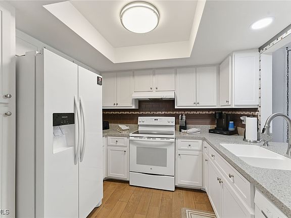 Light and bright end-unit condo in SE Cape Coral with stunning views of the pool and Gulf-access canal. This 2-bedroom, 2-bath home features wood-look tile throughout, solid surface countertops in the kitchen, and both a dining area and an eat-in space off the living room. Enjoy peace of mind with a newer A/C unit, new water heater, freshly painted exterior, full hurricane shutters enclosing the screened lanai, and a fully funded HOA with solid financials. The community offers a first-come, first-served Gulf-access dock, and condo fees include water, building insurance, and flood insurance. Washer and dryer are conveniently located in the unit—everything you need to enjoy the easy Florida lifestyle!