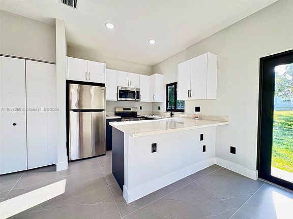 This newly built house in Fort Lauderdale, built in 2025, boasts premium finishes and a spacious layout with three bedrooms and two bathrooms. The modern kitchen features custom cabinets with soft-close doors and granite countertops, while the stylish bathrooms have granite vanities. Additional highlights include a high-efficiency air conditioning unit, impact-resistant doors and windows, and beautiful porcelain flooring. The large, fenced backyard provides ample outdoor space, and this home is conveniently situated near the beach, dining, entertainment, and I-95. Pets info: Dogs can weigh up to 20 pounds; non-refundable deposit of $300. Before moving in, the landlord requires mandatory renter's insurance, a one-month rent payment, and two security deposits.