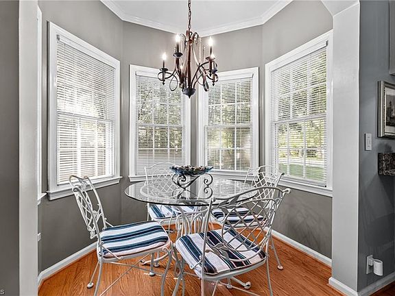 Beautifully Updated Corner-Lot Home with Lush Landscaping! Sip your morning coffee on the rocking chair front porch or relax on the back deck or patio overlooking manicured greenery. Inside, enjoy hardwood floors throughout the main level, a welcoming foyer, and a spacious living room with custom trim, molding, and a cozy gas fireplace. The updated kitchen features white cabinetry, granite countertops, and a charming breakfast nook, plus a formal dining room and half bath. Upstairs, the luxurious owner’s suite offers a newly renovated spa-like bath with tile shower, freestanding tub, modern vanities, and a walk-in closet with built-ins. Two guest bedrooms, a full hall bath, and a versatile bonus room (4th bedroom, office, or playroom) complete the upper level. A two-car garage with storage, generous outdoor living space, and a prime location just 5 minutes from I-40/85 round out this well-maintained gem full of curb appeal!
