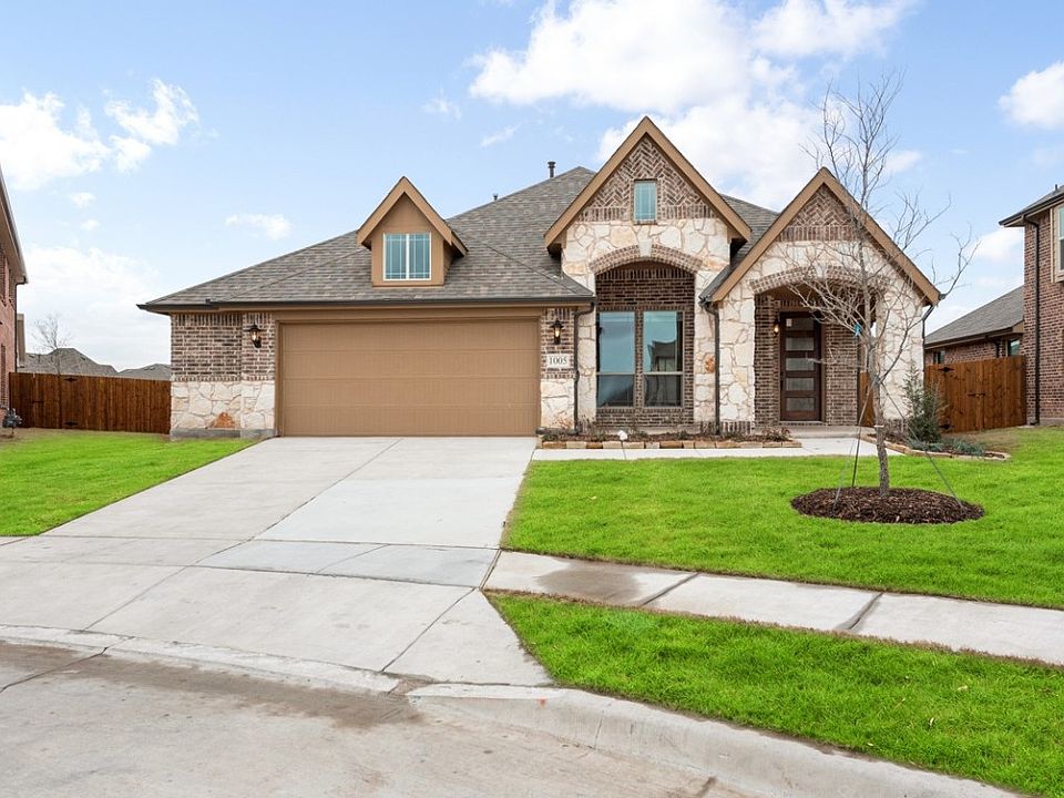 Ready NOW for Immediate Move-in! Bloomfield's Dogwood plan is a single-story with 3 bedrooms, 2 baths, and gorgeous open-concept layout. Stone & Brick elevation with a front sitting porch and impressive 8' glass & iron accented front door. Covered Patio in the back, giving you two large outdoor spaces ready to be transformed! Formal Study in front of the home off the entrance with French Doors to make the perfect home office. Charming Kitchen comes with all gas cooking on SS appliances, Quartz tops, upgraded cabinetry, and glass pantry door. Family room is bright & open with walls lined with windows looking out to the fenced backyard. Spacious Primary Suite has a window seat looking out to backyard, 5-piece ensuite & walk-in closet. Upgraded flooring throughout, Quartz vanities in both baths, 2in blinds, and more! Fully landscaped w plants, trees, stone edging, sprinkler system, stained fence & gutters. Mortgage assistance is available. Visit Bloomfield's models in West Crossing today!