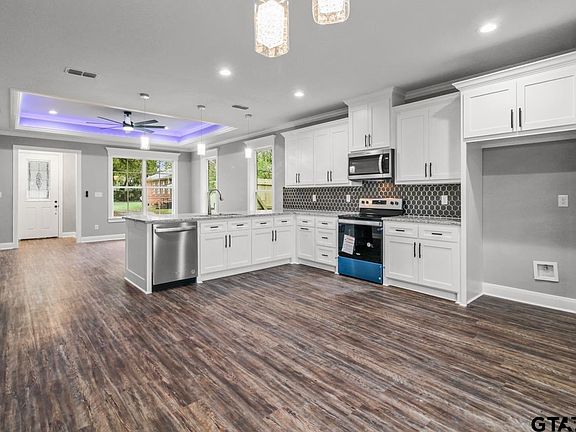 Open Saturday 1/7/23 From 12-2pm. BUILDER IS OFFERING $5,000 IN CLOSING COSTS CONCESSIONS. Wonderful brand new construction home in the heart of Tyler. So much charm and character in this 3 bedroom/2 bath home. Nice landscaping out front to tie in with the half brick veneer and smart siding. Beautiful wooden beam accents, all within the front view of the home. Open concept floorplan, with nice neutral paint to match with any style décor. The kitchen is bright, and beautiful with granite counters, tile backsplash and touches of gold. This home is all electric with stainless steel microwave, dishwasher, and stove. Custom cabinets, accent lighting, vaulted ceilings, and Laminate plank flooring throughout all of home. Primary bedroom is a large size, and has a walk in closet. Primary bathroom shower has tile on 3 sides of the walls. Large utility room, with your washer and dryer hookups. A large backyard with a 6 ft. privacy fence, and covered back porch to sit and enjoy the outdoors. Energy efficiency windows, and insulation blow in to help out with your utility costs. Also comes with a 1-2-10 Builder warranty. Look no further when trying to find the perfect new home, call today.