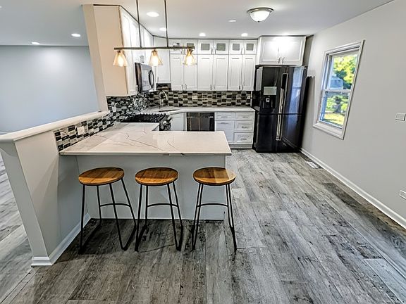 This luxury 3 bedroom, 2 full bath ranch has been beautifully updated inside and out, offering a perfect blend of style, comfort, and peace of mind. Recent upgrades include a new roof, Hardy Board siding, and striking new brickwork on the sidewalk and patio, along with energy-efficient vinyl windows. Inside, the home features brand-new luxury vinyl plank flooring throughout, fresh paint, a new washer and dryer, and an updated electric panel. The gourmet kitchen is designed for modern living with new white shaker cabinets featuring lazy Susans and built-in garbage storage, quartz countertops, and a state-of-the-art microwave. Both bathrooms have been fully remodeled with stylish tile, vanities, and medicine cabinets, while the primary bath showcases a glass-enclosed shower. Completing this move-in-ready home are a brand-new furnace and AC system, plus a dry crawl space for added storage. Every detail has been carefully considered to provide lasting quality and modern convenience.