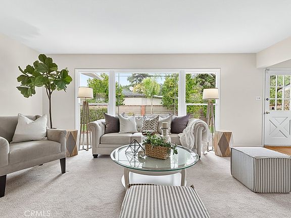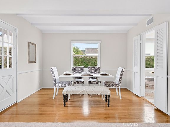 Nestled on a fall-colored tree lined street in the highly sought-after West Floral Park neighborhood, this 1952 home is simply a classic with traditional style, charm and an abundance of light. An entry will greet you at the front door with original hardwood flooring and a built-in cabinet with scalloped design shelving. An expansive Living room with a cozy brick fireplace with traditional accent molding and mantle stands across from a wall of windows looking out onto the private backyard. A designated dining area at the end of the room shares views of the backyard as well. The kitchen is sunny and bright with white tiled counters, a farm sink, original cabinets with scalloped design and a cozy sitting nook. Both bathrooms display original white tiled countertops, mirrors and light fixtures with the main bathroom hosting a separate shower and separate tub. A corner bedroom features a wall of built-ins with drawers and desk area with the same scalloped design. The second bedroom has wainscoting and could easily be converted to a den. The master bedroom is spacious and light with custom louvered doors to the closet. The home boasts newer windows throughout. The backyard has a open pavered patio area that would be the perfect spot to land at the end of the day among the citrus tree, camelias and plumeria.
