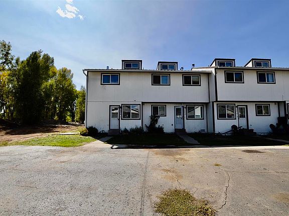 Two Bedroom, 1.5 Bathroom south end corner unit condominium located in City of Gunnison. Main level upon entry has an open kitchen dining area, washer and dryer, utility closet, half bath, living room with a wood stove, and a secondary entry door. Second level has both bedrooms separated by a full bath, and hallway with a vaulted ceiling with a skylight.