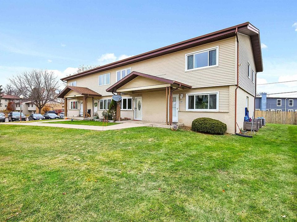Showings to begin on 11/21. Beautifully updated 2BR/1.5BA townhouse-style condo has everything you're looking for. Private front entry with additional rear patio allowing extra privacy. Enjoy in-unit laundry, a finished basement for extra living or workspace, two gas fireplaces, and two convenient parking spaces. Major upgrades include a new 2025 furnace, water softener and recent city-completed CIPP pipe lining for long-term peace of mind. Ideally located near downtown, with quick access to restaurants, shops, and local businesses. Move-in ready, stylish, and perfectly positioned?your ideal home awaits! Stop renting and start investing in your future!