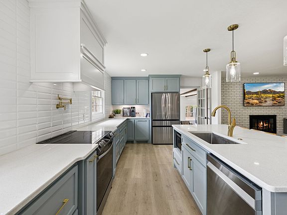 Gas fireplacePrivacy fenceAll brickPot fillerCustom built vent hoodContemporary lightingUnique touches
