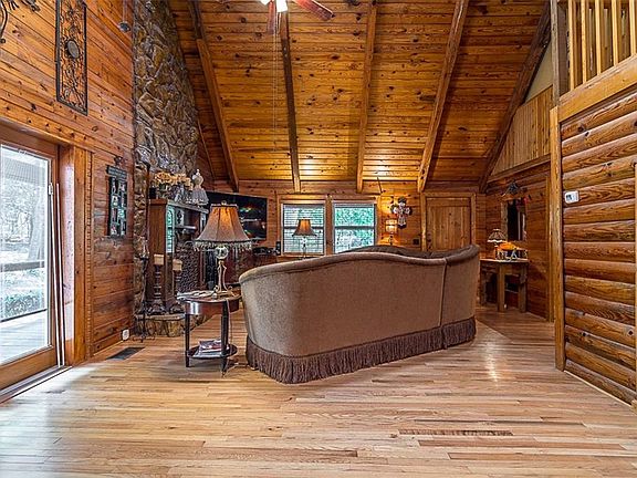 Beautiful real LOG CABIN home with a large wrap around porch offers a true country living. The amazing barn includes 4 horse stalls, a tack room, and upstairs guest quarters. Enjoy the outdoor living area that over looks the pool. The tranquility of the manicured trees offers a getaway located 20 minutes from Downtown. There is ample parking for all your guest. Listed sqft for the house does not include the barn and the upstairs guest quarters.