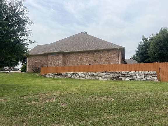Wonderful large corner lot home with open living! Wood floors great custom features include granite tile counters, breakfast bar, tile bathrooms, dual sinks, jetted garden tub, walk in closets in master bedroom, beautiful kitchen cabinets, sprinkler system, fenced yard 2 inch blinds, covered patio with fan. Separate shed that offers electricity Contact for details.