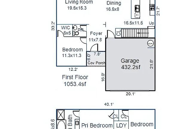 Upstairs is the owner's suite with tray ceiling, including a unique connected bonus room with French doors & closet perfect for a nursery, sewing room or office. Owner's bath has two sinks, quartz countertop, soaking tub, walk-in shower, water closet and large walk-in closet. The 2nd floor is complete with two additional bedrooms, full guest bath with 2 sinks and a separate laundry room with washer & dryer included. Additional features: LED can lights, ceiling fans, gutters, gas water heater, 9' ceilings, ceramic tile in baths, and termite bond.