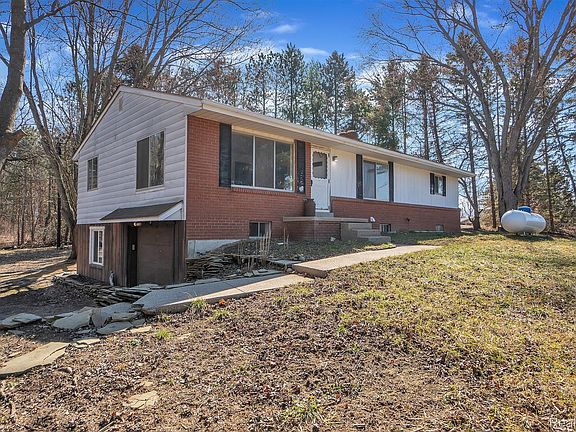 Brighton ranch on huge wooded 3.4 acre lot! Cozy brick fireplace greet you in the large living/dining spaces on the main level. Updates include fresh paint throughout and newer furnace and ductwork. Finished basement/in-law quarters features a newly remodeled bathroom with in-floor heating, 2nd kitchen, and separate Mitsubishi ductless heating system from upper level. Mature, stately pine trees guard your lot offering ample space for bonfires, gardens, and exploring! Large new barn has upper level storage room and garage doors for convenience of lawn tools. Centrally located to those commuting to M59, Milford Proving Grounds, Downtown Brighton, and the 96 interchange.
