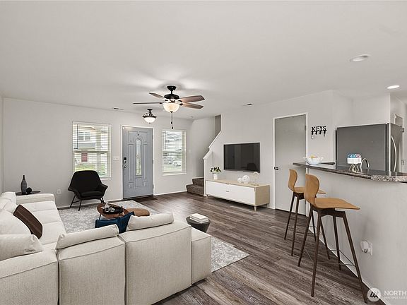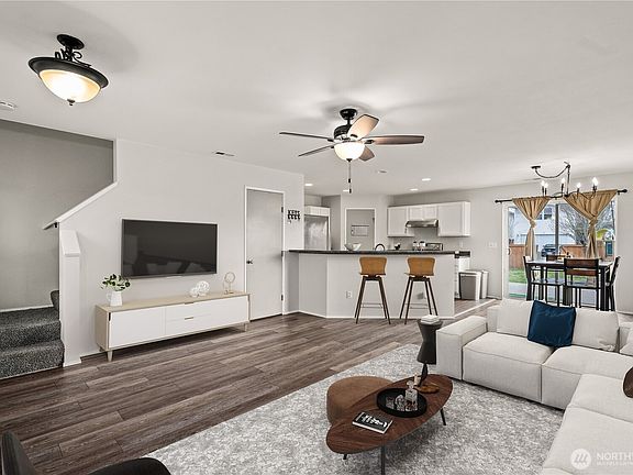 ***A/C and Furnace installed year 2023*** Wonderful home at the end of the cul-de-sac! Entertain guests on the open layout first floor with easy flow towards the outdoors! Numerous big windows allowing for natural light. Modern Kitchen with vast counterspace! Big loft upstairs with potential to be anything you want. Mt Rainier view on the loft window and another bedroom. Huge Primary Bedroom with huge closet and amazing en suite. Fully fenced back yard with a rear gate for trailer/boat parking. Lot is twice as big as most of the neighbors. 2-car garage, 6-car driveway, with street parking. Close to shopping, schools, parks, golf & more!