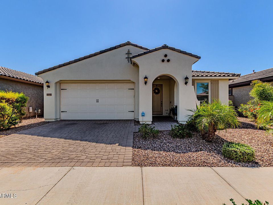 Step inside and discover this beautifully designed 3 bedroom, 3 bath home offering 1,953 sqft of comfortable living in the highly desired Eastmark Master Planned Community. This home features a desirable split floor plan, a spacious 3-car tandem garage, and a large primary suite with walk-in closet, dual vanity, and luxurious spa shower. The open layout flows into a backyard retreat with low-maintenance synthetic turf and a paver patio, ideal for gatherings or quiet evenings. Eastmark's resort-style amenities feature sparkling pools, playgrounds, a vibrant community center, skate park, and miles of walking trails all just steps from your door.
