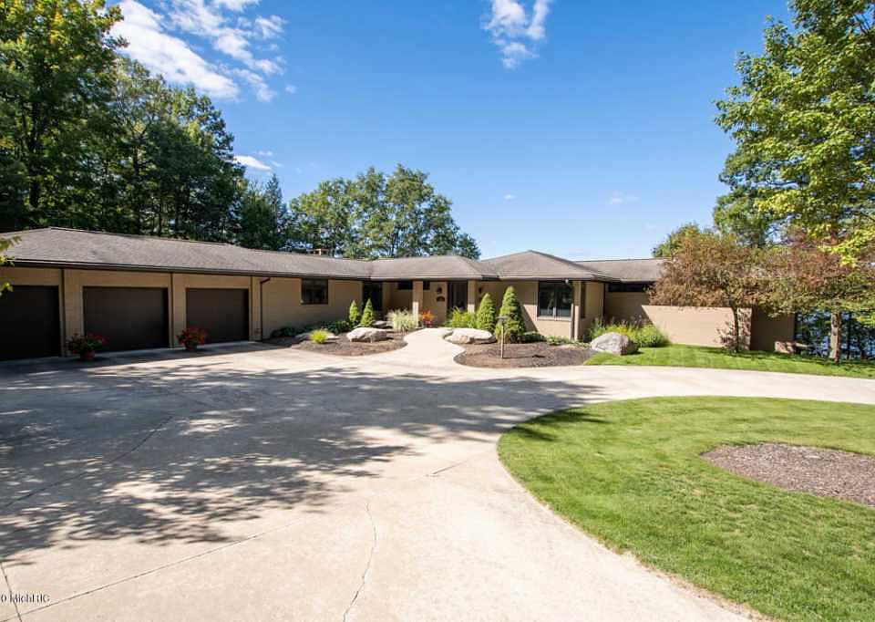 Nestled across a large, wooded property with 186' frontage on a private, all sports lake, this custom built 7000 square foot residence offers plenty of room for family and friends to vacation year round in style and comfort. Located just 90 miles north of Grand Rapids, MI, this exquisite home features 5 bedrooms and 4-1/2 baths.Two additional bonus rooms can be used for additional sleeping, fitness, or home office space. 400 acres of adjacent association land provides year round access for hiking, fishing, hunting, cross country skiing, and snowmobiling, all yours to enjoy. Tastefully designed and decorated, you'll feel the indoor/outdoor connection most in the expansive living room with three walls of glass providing spectacular sunset and panoramic lake views, as well as the tranquilit
