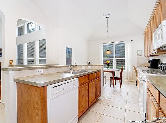 Located in a gated community, conveniently close to 1604, this beautiful ONE STORY, four side masonry, gas fireplace and kitchen, open floor plan home is priced to sell! It has been well maintained and lightly lived in. No carpet throughout, only hard tile and deluxe hardwood floors! The wonderful light in the living area and kitchen gives this house a very homey feel. Open layout! $5000 price reduction. OPEN HOUSE, Saturday, May 25th, 11-3. Gate code for open house is 2438. There will be refreshments!