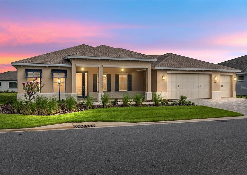 Step into effortless elegance with this brand-new Brighton model, located in the heart of Ocala’s most sought-after gated 55+ community- On Top of the World. Designed for both comfort and style, this 2-bedroom, 2-bathroom home features a spacious open-concept layout, upscale finishes, and a versatile flex room with French doors — perfect for a home office, den, or creative space. The chef-inspired kitchen is a true centerpiece, showcasing quartz countertops, a generous center island, stainless steel appliances, and sleek cabinetry with under-cabinet lighting. Whether you're hosting guests or enjoying a quiet evening in, the sunlit dining area flows effortlessly to a screened lanai, offering tranquil views of the property. The luxurious primary suite is your personal retreat, complete with a walk-in closet that conveniently flows into the laundry room, and a spa-like ensuite bathroom featuring dual quartz vanities and a beautifully tiled walk-in shower. A thoughtfully designed guest wing offers privacy and comfort for visiting friends or family. This home also includes a spacious 2-car garage with an attached golf cart garage—perfect for exploring the community or quick trips to nearby shopping and amenities. Enjoy access to resort-style amenities, golf cart-friendly pathways, and the vibrant, active lifestyle that defines On Top of the World. Don’t miss your chance—schedule your private tour today! This Beatrix beauty won’t last long.