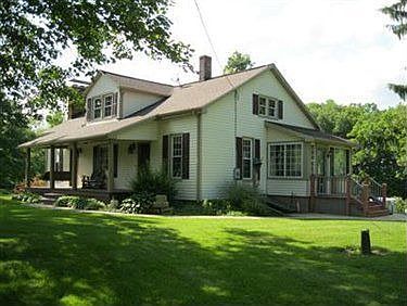 Mineral Rights pass to buyer plus NO DOWN PAYMENT! USDA approved for financing... Gas Lease available....This 3 Bedroom Cape Cod is on the list of Historical Structures in Ohio and sits on 6.5 tranquil acres. Built in 1840 as a Quaker Meeting House. The Living Room boasts a fireplace /wood burner, HUGE Formal Dining Room, Brand new Bath, Country Kitchen with newer appliances and eat-in space. Updates include the vinyl siding (with insulation), newer shutters, roof, windows, furnace, electric and concrete walkways. Take your choice of heating: electric baseboard, forced air or fireplace w/wood burner. Fabulous Bathroom has been totally redone. Wood Deck off the back with above ground Pool. Fantastic Front Porch is perfect to relax on a warm summer night. A Quaker Cemetery lies on a side parcel of the property and is marked with a Historical Marker.
