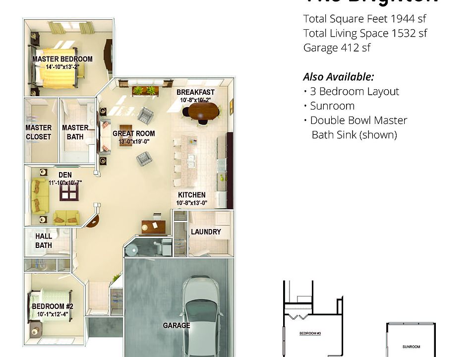 3 Beds, 2 Bath, 2 Car Garage, Sunroom, Fireplace, Fallow Cabinets, Granite Kitchen Countertops, Master Bath with Double Bowl Sink, Laminate Flooring, Designer Carpet, upgraded lighting, Full Architectural Trim Package, FULL Stainless Steel Kitchen Appliance Package, Complete Landscaping, Energy saving features.