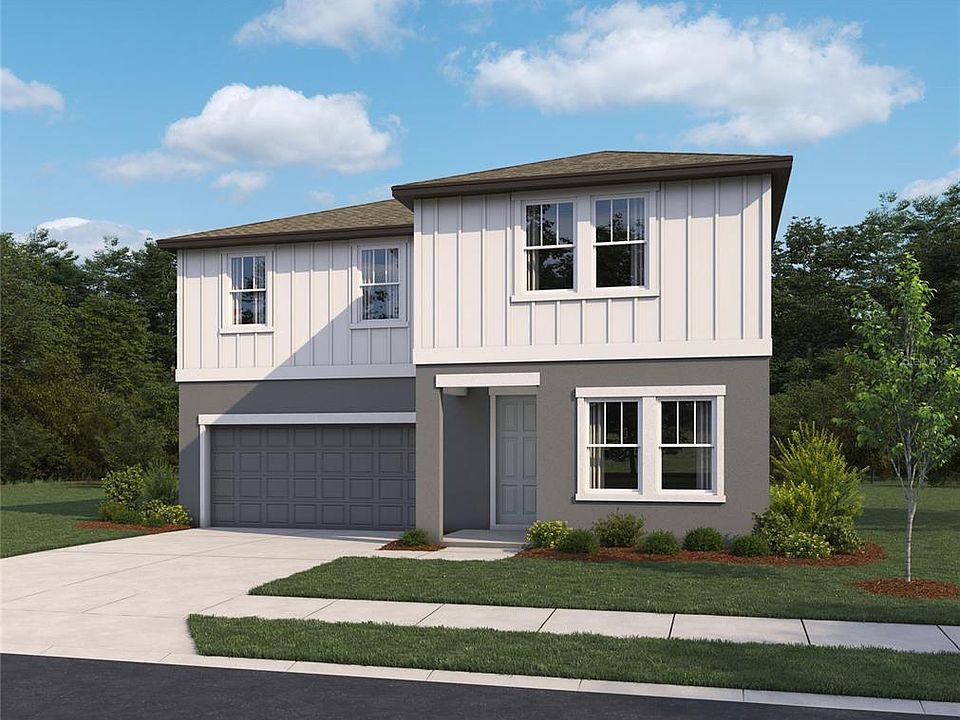 Under Construction. Discover the Teton home plan-- a modern, thoughtfully designed five-bedroom, three bathroom layout that blends comfort and functionality. The open living and dining areas flow effortlessly, while the spacious primary suite features a tray ceiling, walk-in closet, and on-suite bath. A perfect work-from-home setup, and a large, covered lanai with sliding glass doors creates a peaceful outdoor retreat. Home will be ready to close in December/January. Featuring our AW Artisan Collection, this home is a cozy, light-filled sanctuary with warm floors, polished quartz countertops, and dark finishes-- perfect for lively evenings or quiet, restful weekends.