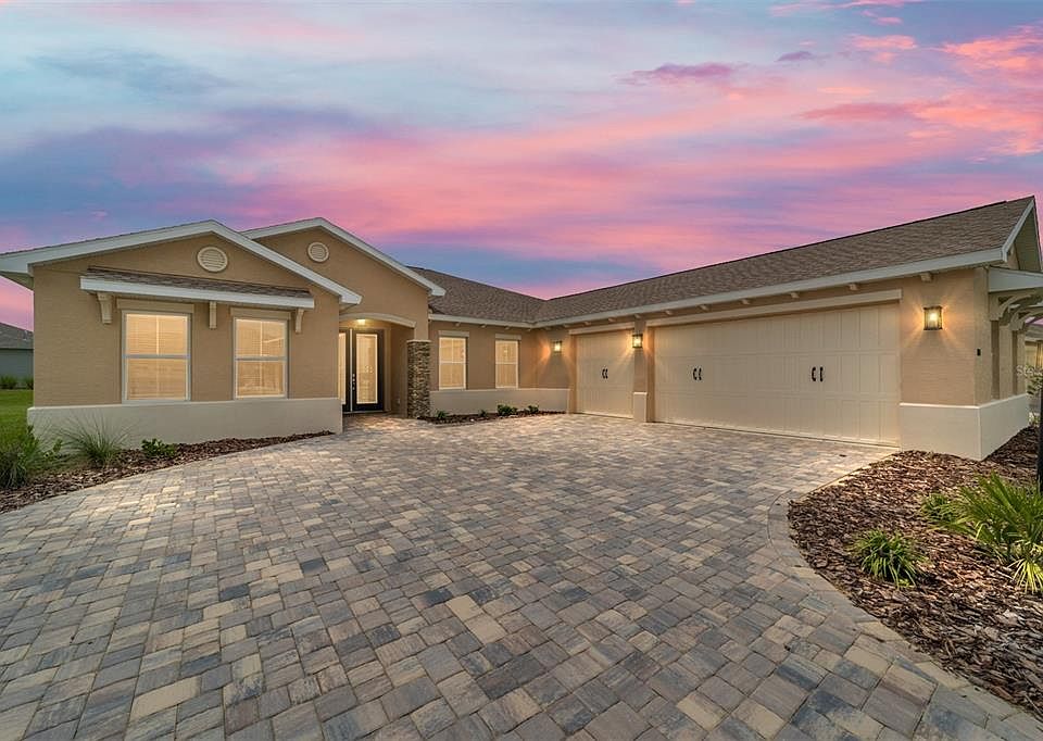Welcome to this stunning new construction Northampton home in the sought-after Balfour neighborhood of Candler Hills at On Top of the World! From the moment you arrive, you’ll be greeted by a paver driveway, a spacious 3-car garage, and elegant French entry doors. Inside, the open floor plan features 3 bedrooms, 2 full bathrooms, and a versatile flex room with French doors, perfect for a home office or den. The gourmet kitchen is beautifully appointed with premium white staggered cabinets with crown molding, quartz countertops, a designer backsplash, under-cabinet lighting, built-in oven and microwave, 5-burner cooktop, and a pantry. The kitchen flows seamlessly into the living area, where a 4-panel sliding glass door opens to the screened lanai — ideal for indoor/outdoor entertaining. The luxurious master suite showcases a tray ceiling and a spa-like en suite bathroom with tile flooring, an oversized double vanity with quartz counters, a zero-entry tiled shower with built-in bench, and a large walk-in closet. As a resident of Candler Hills at On Top of the World, you’ll enjoy access to world-class amenities, including championship golf courses, resort-style pools, state-of-the-art fitness centers, pickleball and tennis courts, walking trails, and a wide variety of clubs and activities. All of this in Ocala’s premier active adult community! Call to schedule your private showing today!