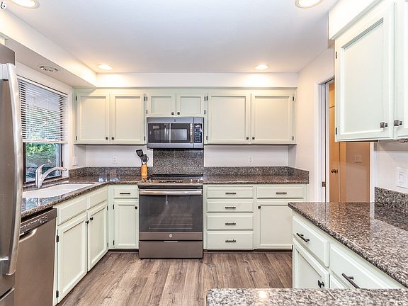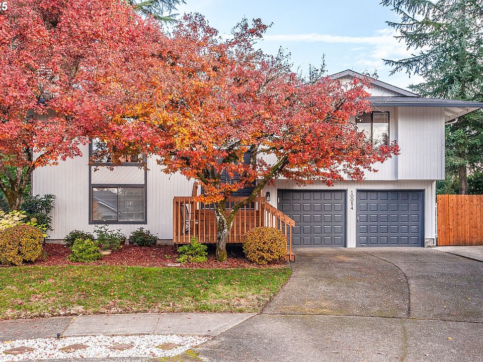 This gorgeous split level home has it all! 3 bedrooms, 3 baths, including a wonderful primary suite, downstairs bonus room and separate office! Stunning kitchen with granite counters, newer appliances and refreshed cabinets. Light and bright living room with gas fireplace, and a separate dining area with slider opening on to the expansive deck, where you can relax and enjoy serene back yard views! Downstairs features a large bonus room with cozy gas stove, and separate office/flex space area perfect for hobby room. The downstairs slider opens to the lower level patio, and leads to the private backyard - a true oasis with mature landscaping, pathways, trees, and a gated area for RV/boat storage. Extras include built in storage in the 2 car garage, separate tool storage area outside, and central A/C! Tons of updates including newer flooring, paint, new front porch, and more! Tucked back on a quiet cul-de-sac, yet close to shopping, parks, schools and restaurants - this is a must see!
