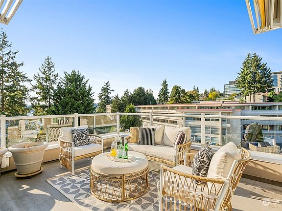 Discover a rare opportunity to own a luxurious penthouse condo in highly-coveted Meydenbauer Bay. Enter grand double doors to find soaring ceilings and an open floor plan, awash in natural light from skylights and expansive windows. The great room exudes opulence with a gas fireplace, seamlessly extending to your private view deck for relaxing or entertaining. The primary suite boasts an oversized walk-in closet and spa-like bath. Enhanced comforts include a private office/den, a secure garage with parking for 2, and an extra storage room, all dedicated to an elevated lifestyle. Located steps away from Old Main Street, Bellevue Mall, dining, shopping, parks, & a picturesque waterfront. Sophistication and style in an unbeatable location.