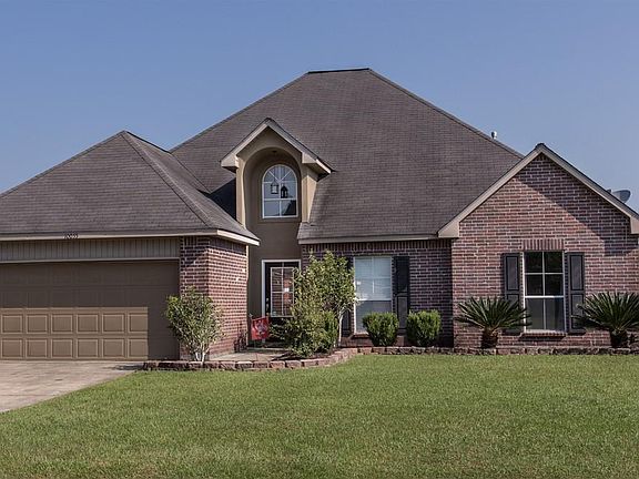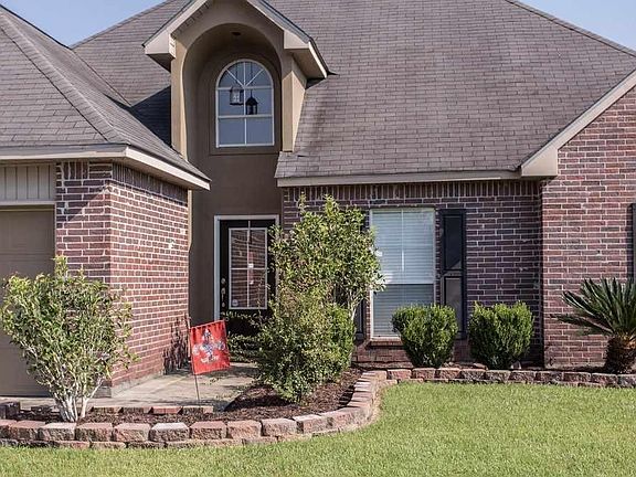 Gorgeous 3 bedroom 2 bath home situated on a large lot! As you enter you will notice the open floor plan, large living room with gas log fireplace. Kitchen has an island with breakfast bar, custom cabinets, ceramic tile backsplash. Refrigerator to remain. Huge master bedroom with sitting area and a en suite bathroom. Master Bathroom has double vanity sinks, soaking tub, 2 walk in closets. No carpet in home, ceramic tile and laminate flooring throughout home. The back yard is fenced in with a covered patio and a storage building. DID NOT FLOOD. No flood insurance required!