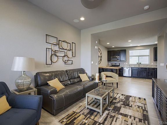 This beautiful townhome is walking distance to shopping, restaurants, Lone Tree Arts Center, Light Rail, and many businesses! Nicely updated, this home comes complete with an on-demand water heater, oversized 1 1/2 car garage, and solar that the builder installed to help you save on your energy bills. The kitchen offers plenty of cabinet space, stainless steel appliances and a gas stove. Enjoy time on your balcony where you will also find a gas hookup for your grill and city views! The upper level includes 2 bedrooms, both with their own private bathroom and the master includes a walk in closet. The built in surround sound is included as well. This home is truly move in ready with all of the furniture negotiable.