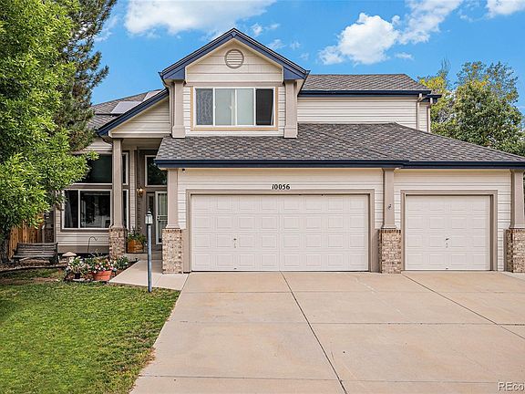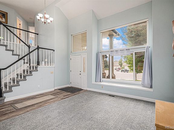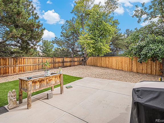 Welcome to this stunning two-story home tucked away on a quiet cul-de-sac in Parker! This thoughtfully designed property offers a blend of elegance, functionality, and modern upgrades throughout. Step inside to find luxury vinyl plank flooring and tall baseboards flowing across the main level. The two-story family room is a showstopper with soaring windows that flood the space with natural light, a gas log fireplace with tile surround, and custom built-ins. The beautifully updated kitchen features new granite counters, stainless steel appliances, tile backsplash, pantry, and a sunny breakfast nook with bay window and built-in desk. A formal dining room with tray ceiling and crown molding, a bright living room with towering windows, a private office, half bath, and convenient laundry room complete the main floor. Upstairs, retreat to the oversized primary suite with vaulted ceiling, walk-in closet with built-ins, and an ensuite bath with dual sinks and granite counters. Two additional bedrooms and a full bath provide plenty of room for family or guests. The finished basement adds versatile living space with a family room, two bedrooms, full bathroom, and additional storage. Enjoy year-round comfort with central A/C, a gas furnace with whole-home electronic air cleaner, and a radon mitigation system. The 3-car garage is a dream with an exterior door, storage shelves, heater, and more. Outside, entertain on the expansive concrete patio in the fully fenced private yard with artificial turf, mature trees, sprinklers, and paid-off solar panels for energy efficiency. Perfectly located near top-rated schools, shopping, dining, and recreation, this home combines timeless style with modern convenience. Don’t miss it!