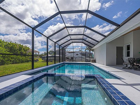 DOUBLE CORNER LOT estate! Here is your opportunity to experience extra privacy with this extra special 3/2/2 POOL Home in the charming waterfront community of South Gulf Cove.With eye catching curb appeal, enjoy the soaring entryway, rich columns, and complimentary accent bands, these added features are most inviting.This split floor plan offers custom stained mill-worked window and doorway casings, high ceilings, abundant natural light, all overlooking a spectacular HEATED SALTWATER POOL with modern automated features including a spa. Spacious living room has a built in entertainment center and tall vaulted ceiling, just perfect for all your socializing or winding down needs. This kitchen is chef worthy kitchen boasting granite countertops, wood cabinetry,stainless steel appliances, breakfast bar and separate dinette with exceptional wainscoting accents perfect for morning thru night to relax leisurely overlooking your backyard oasis. The master bedroom has a beautiful coffered ceiling, private patio/pool access, dual walk in closets and lovely en-suite bath featuring two sinks plus both a shower and large jacuzzi tub. Guests will enjoy two choice bedrooms with nice walk in closets, and breezy fans sharing a nicely appointed pool bath with the rest of the home. Inside laundry room is conveniently located by the 20x24 garage and kitchen with extra upper cabinetry, storage/utility closet/pantry plus has a utility sink. NEW 2023 ROOF, GUTTERS, NO-SEE-UM Pool screens, and freshly painted exterior add extra value and peace mind. SWIM YEAR ROUND, your Saltwater pool is also HEATED! Lounge leisurely on the pool sun ledge or relax in the jacuzzi and enjoy all the automated lighting features with so many options to dazzle whatever you or your guests desire. Imagine all the special times ahead to be made with friends and family within this idyllic retreat and the added fun features you can dream of in your expansive side and backyards.The second lot has already been cleared for your enjoyment and ready for all your personal ideas. South Gulf Cove is a premier deed restricted community featuring a voluntary HOA with remarkably low annual dues of only $120.As an HOA member, you'll enjoy access to the air-conditioned clubhouse, complimentary Wi-Fi, ping pong, darts, cornhole, horseshoes, tiki huts, and discounted clubhouse reservations. Several community parks are nearby, offering walking paths, boat launch, fishing docks, picnic shelters, BBQ grills, and playgrounds.SGC is only minutes away from WORLD CLASS FISHING, GOLF COURSES, shopping, dining, SW FL beaches in Boca Grande and Manasota Key plus access to over 55 miles of SGC waterways leading to Charlotte Harbor, Myakka River & the Gulf.Here is the Florida lifestyle you've dreamed of...make it a reality & schedule your showing TODAY!