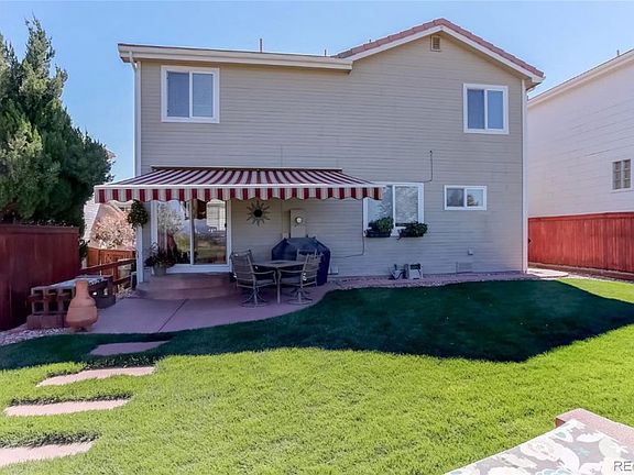 MOUNTAIN VIEWS, CUL-DE-SAC, OPEN SPACE & BACKYARD OASIS! Enjoy Colorado sunsets in the park-like back yard without homes behind you. UPDATED THROUGHOUT with new upgraded carpet, Interior Paint, Light/Fan Fixtures, Hardwood Stair and Railing, Vapor Barrier System, Tile Flooring in Primary/Secondary Bath, Front Storm Door! Bright & open 2 story located on a quiet street in a CUL-DE-SAC. FINISHED BASEMENT! Beautiful GRANITE kitchen & bathroom countertops and Brand NEW stainless Steel APPLIANCES. Main floor laundry. Washer/dryer included. Two patios perfect for grilling & outdoor dinner parties. Retractable electric awning over main patio for shade. Concrete tile roof. 2 car attached garage with Paint Coating. Short walk to all schools! Enjoy the benefits of Highlands Ranch amenities that include Community pools, tennis courts & 4 fitness centers. Conveniently located near major routes, Town Center for shopping/dining, schools, library, & parks. A Must See!