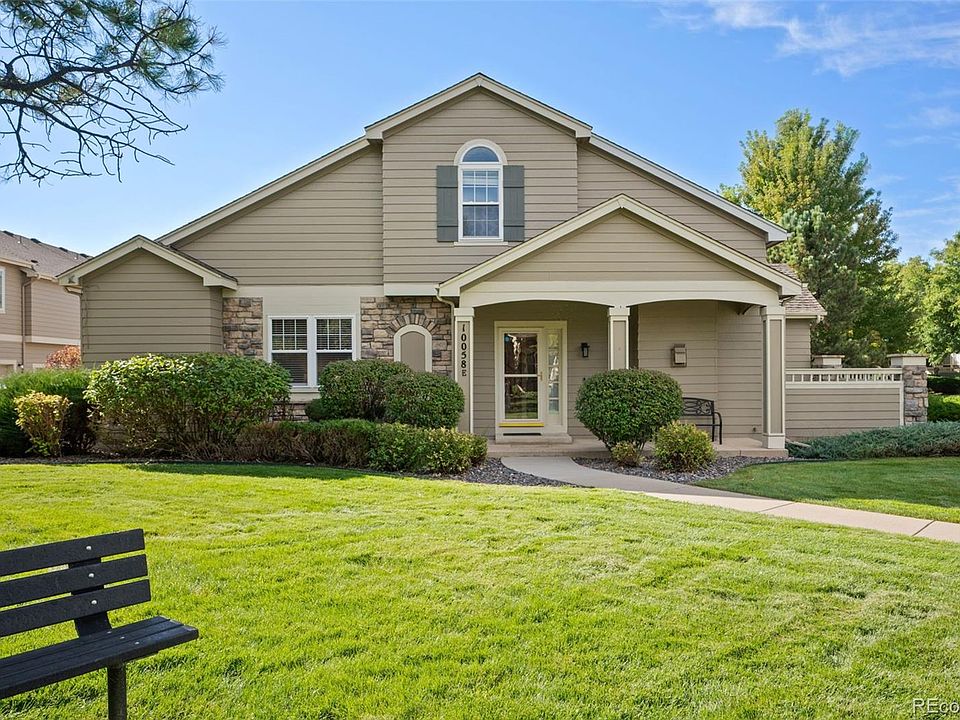 One of the best properties to hit the market in Northpark! This Rare Ranch-Style End-Unit Townhome offers 2 main-floor master suites, a spacious loft, and a professionally finished basement. Lovingly maintained, this home features gleaming hardwood floors throughout most of the main level. The inviting living room is filled with natural light from numerous windows and includes a cozy gas fireplace—perfect for chilly Colorado evenings. The beautifully updated kitchen boasts brand-new white quartz countertops, a new gas stove, side-by-side refrigerator, new sink and faucet, and abundant cupboard space. Step right out to your own private patio to enjoy your morning coffee. Upstairs, the versatile loft and half bath are ideal for a home office or quiet retreat. The professionally finished basement offers endless possibilities—gym, craft room, guest suite, or second office—plus a huge unfinished storage room and 2 crawl spaces for even more storage. Additional features include a custom closet organizers in both walk in closets, main floor laundry conveniently located off the garage, 2-car attached garage with opener, central air conditioning, and a radon mitigation system. As a resident, you’ll also enjoy community amenities including a pool, tennis courts, and park—all while being conveniently close to shopping and dining. This rare gem won’t last long!