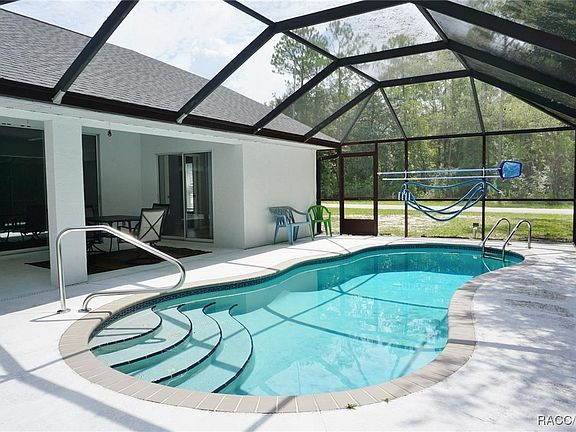 This Rusaw built family pool home is the perfect place to relax, entertain and enjoy family. Step thru the double entry doors to the great room with vaulted ceiling for a feeling of spaciousness with a view through the sliders to the outdoor dining area and sparkling pool. To the right of the entry is the dedicated office with French doors for privacy. The spacious kitchen with new appliances (Sept 2025) has a breakfast bar and is open to the 17X16 family room with a gas fireplace to take the chill off on the cool January nights. After a long day, your master retreat awaits, read a book in the 9X9 sitting room, with a view of the pool, or take a bubble bath in the garden tub in the master bath with dual sinks and plenty of storage. Bedroom 2 & 3 are on the opposite side of the home with the full guest bath with access directly to the pool. Picture your pool party with swimming and relaxing poolside with plenty of room or tables & chairs with a view of the backyard. New roof 2022, HVAC 2013. Located on a corner lot in the homes only community of Citrus Springs. Adjoining lot on the pool side can be purchased from this seller in a separate contract.