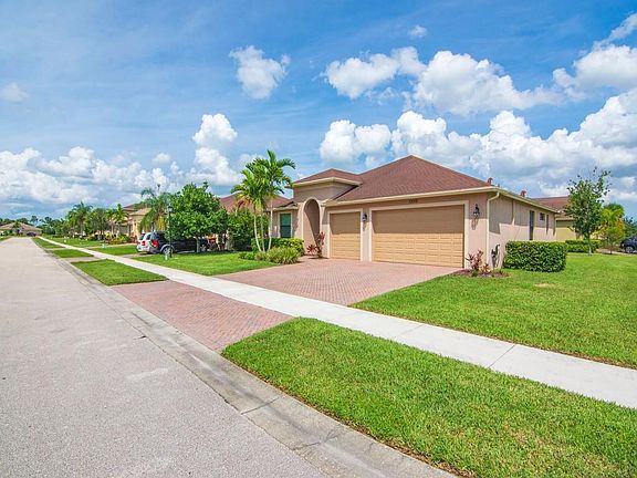 Welcome to this beautifully maintained lakefront home with 3-Car Garage. This picture perfect home has 3-bedroom and 3-full bathroom on a desirable corner lot with peaceful lake views. The open floor plan features spacious living and dining areas, a modern kitchen with granite countertops, and a private primary suite with walk-in closet and en-suite bath. Enjoy outdoor living on the covered patio overlooking the lake. The 3-car garage provides ample storage, and the split-bedroom layout offers flexibility for family, guests, or a home office. Community amenities include a clubhouse, heated pool, spa, fitness center, basketball court, and playground—all with a low monthly HOA! Conveniently located near shopping, dining, Vero outlets, I-95 and the beaches of Vero Beach. Home features custom-fit “Lutron” smart shades—Alexa enabled in the main bedroom (honeycomb blackout shade) and dining room (light-filtering shade)—plus smart lighting in both rooms. A large linen hall closet doubles as an office! Beautiful paver driveway and back patio add timeless style and curb appeal to this charming home.