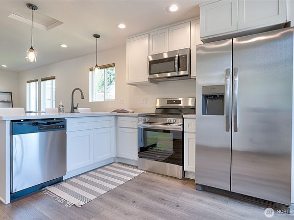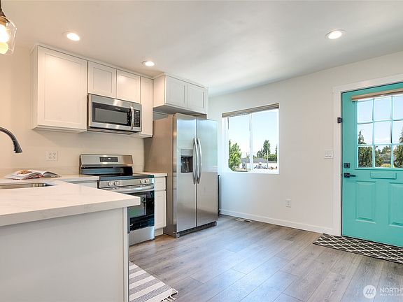 Welcome to carefree living in this delightful 2-bed, 1-bath retreat, reimagined as the perfect condo alternative. Enjoy your completely renovated home with a new roof, kitchen, bath, and heating/cooling system. Luxuriate in finishes like luxury vinyl plank floors, stainless appliances, and quartz countertops, with updated electrical and plumbing for peace of mind. An unfinished basement offers abundant storage or a creative maker's space or both, letting you dream and build further equity. Off-street parking and bus access make getting around a breeze. Whether enjoying local cafes, library, eateries, brewpub, parks, and shops or hopping on HWY 509 to downtown, SeaTac, or Southcenter and more—discover comfort and convenience.