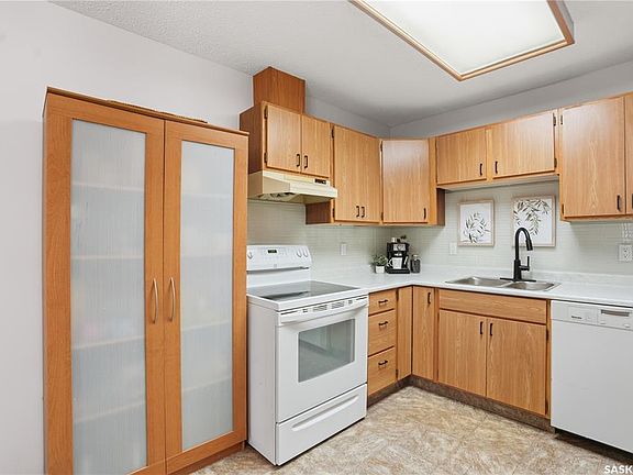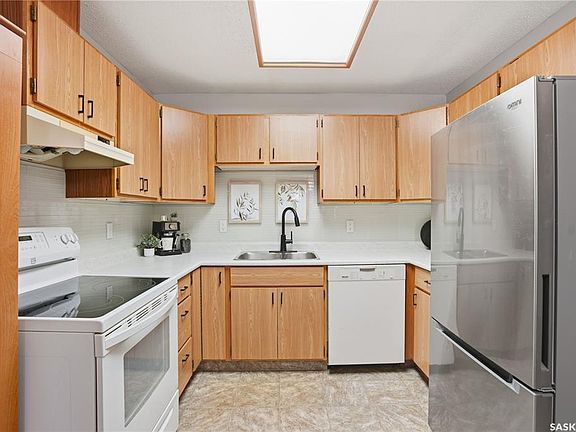 2-Bedroom Condo with Underground Parking in Prime Varsity View Location for an Amazing Price! Welcome to this bright and spacious 2-bedroom condo at 204-1006 9th Street East, offering an incredible location just minutes from the U of S, University Hospital, and the amenities of downtown and 8th Street. This unit features an abundance of natural light and has been well-maintained with numerous updates, including newer paint throughout. The functional kitchen includes a bright eating area, an upgraded fridge and Miele dishwasher, new countertops and backsplash, and ample cabinet space. The large living room provides access to a desirable West-facing balcony. The four-piece bathroom has been beautifully updated with a new vanity, toilet, fixtures, and vinyl tile flooring. The primary bedroom features a closet that comes with a built-in organizer. The second bedroom is currently configured with French doors leading to the living room, making it ideal for a home office, den, or guest room. Enjoy the convenience of in-suite laundry with a full-sized washer and dryer, plus an adjacent storage room. The unit also includes an air conditioning unit for comfort, and a valuable heated underground parking stall. The secure building features elevator access for easy living. This is the perfect opportunity for students, professionals, or anyone seeking an affordable, turn-key home in Varsity View. Call today for your private viewing!