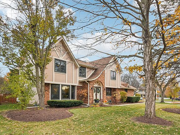 This inviting home blends classic charm with modern comfort throughout. Inside you'll find a bright, open layout featuring hardwood floors, elegant millwork, and generous natural light. The main level offers multiple living and entertaining spaces - a formal living room with statement trimwork, a stylish dining room with rich navy walls and modern light fixture, and a cozy family room with a brick fireplace which opens to a stunning, heated sunroom, the perfect spot to enjoy morning coffee or unwind at the end of the day and admire the beautiful yard. The spacious kitchen is a true gathering spot, with warm wood cabinetry, granite counters, a center island, and stainless steel appliances. Upstairs, you'll find 4 large bedrooms, all with walk in closets, including a serene primary suite with ample closet space and ensuite with double vanity. Enjoy the spacious, fenced backyard with a paver patio and deck, raised garden beds and mature trees - ideal for entertaining, gardening, or simply relaxing. This home has been well maintained and updated. Carrier Infinity HVAC (2024), new dishwasher (2021), updated main floor half bath (2025), Radon System installed (2020), fresh paint and light fixtures. Located on a quiet residential cul-de-sac close to parks, District 203 schools, and downtown amenities, this home offers the best of suburban living with easy access to the city.