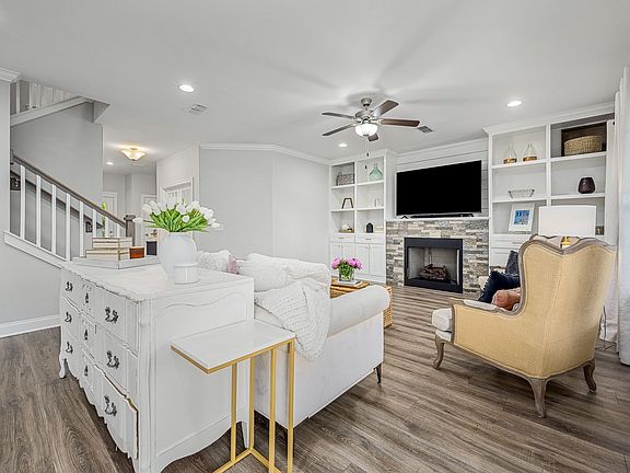 Step outside to enjoy the jumbo covered back porch with a gas fireplace—perfect for cozy evenings and summer gatherings. You can also relax on the front porch while enjoying the quiet cul-de-sac setting. The three-car garage includes a separate split unit (heat & air) in the third bay, currently set up as a home gym. With tons of concrete parking space (over 1,000 sq feet added), there’s plenty of room for parking, guests, and extra vehicles.