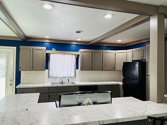 3 bed two bathrooms, New kitchen countertops, painted all interior new flooring. Has central heat and air. Includes stove, dishwasher and fridge.