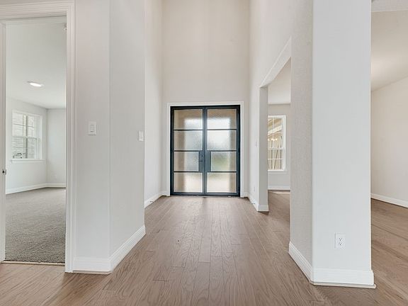 Experience luxury and comfort in this beautifully designed Grand Homes property located in the highly sought-after Breezy Hills community. Nestled against a scenic greenbelt and just steps from the trail system leading to the neighborhood pool and parks, this home offers the perfect blend of nature and convenience. Residents enjoy a family-friendly atmosphere with access to a community pool, playgrounds, and an extensive network of bike trails. The home is situated within the acclaimed Rockwall ISD, known for its top-rated schools. This elegant single-story residence features a striking double-door entry and an open-concept layout with three spacious bedrooms. The groin-vaulted family room is a standout, showcasing a sleek 48-inch linear modern fireplace and sliding glass doors that open to a covered back patio, ideal for outdoor entertaining. A private den or home office offers a quiet space for work or relaxation. The gourmet kitchen is both stylish and functional, featuring painted Shaker cabinetry, stainless steel appliances including a gas cooktop, Omegastone slab countertops, a full bowl sink, a built-in spice rack, a hidden trash drawer, and a generous center island perfect for gathering. The primary suite is a true retreat, complete with a cathedral ceiling, a freestanding soaking tub, dual vanities with rectangular sinks, a tiled walk-in shower, and an expansive walk-in closet. Built with energy efficiency in mind, this new construction home includes R-38 insulation and double-insulated vinyl windows for enhanced comfort and savings. Don’t miss your opportunity to own a sophisticated and energy-conscious home in one of Rockwall’s premier communities.