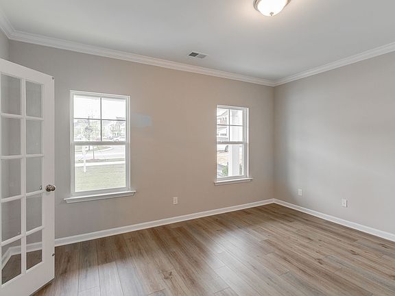 The Webster, with elevation E, is a five-bedroom, four-and-one-half-bath two-story home. An office space is located off the entry with French doors and also has a ped pad in there for your fur babies. This open plan features a large gourmet kitchen with a center island, an eat-in area, and a great room with a fireplace. There is a large entry off of the garage that features a walk-in pantry and a bench and cubby area. A guest bedroom with a private bath is located on the main level. On the second level of the home, there are three secondary bedrooms with walk-in closets and a Jack and Jill bathroom. A large bonus room and laundry room are also located upstairs. The large primary suite features two walk-in closets, a water closet, dual sinks, and a garden tub with a separate shower. The home has a covered back porch with an additional concrete patio perfect for grilling out!