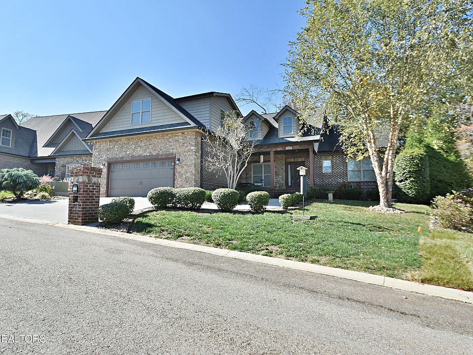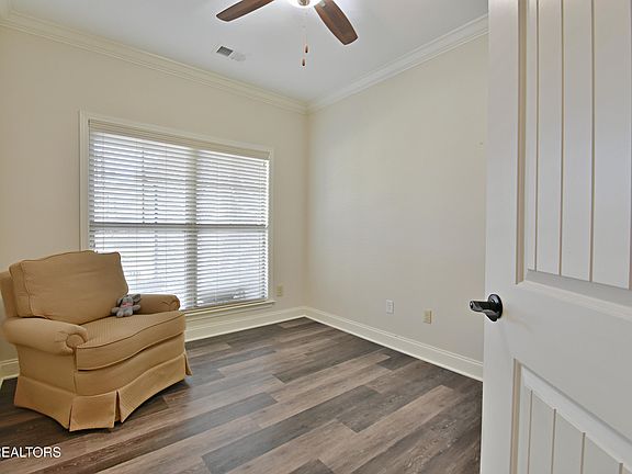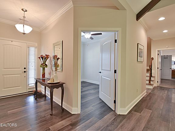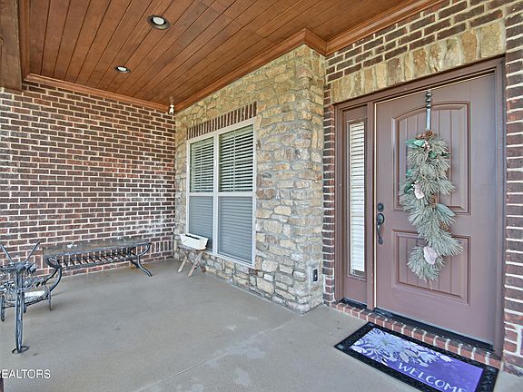 The Owners Suite is a private retreat, boasting soaring vaulted tray ceilings with a ceiling fan, and a large custom walk-in closet. The en suite bathroom is equally impressive, with a huge walk-in tile shower with a frameless glass door, and a granite vanity. The two guest bedrooms are also well-appointed, each featuring ceiling fans, and large custom closets. The guest bathroom includes custom tile flooring, a single sink with a granite countertop, a tiled shower and frameless glass door. Upstairs has a huge bonus room with built in dry-bar, full bath w/tile shower, frameless glass door and a ton of walk in attic space. Storage galore! Beyond the interior, the home offers fantastic outdoor amenities. Enjoy maintenance-free brick construction, a beautiful, mostly level property backs up to TVA for max privacy . The property also includes a covered front porch, a covered back porch, a screened porch, and an oversized 2-car garage.