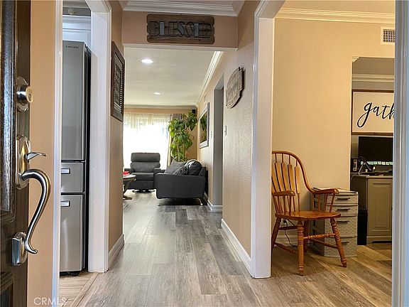 As you open the solid wooden entry door, you will be warmly welcomed into this magnificent home in Azusa which has been extensively upgraded with luxury vinyl plank floors, crown moldings with matching baseboards, newer windows and sliding glass doors to the backyard which comes with an 18 X24 foot in-ground vinyl lined pool with heater. The updated kitchen has newer appliances, newer cabinets with self-closing drawers and cabinet doors, quartz countertops with Marble Splashing and wood look tile flooring. Plantation Shutters can be found on the windows in the kitchen and Master Bedroom. The front bedroom is currently being used as a formal dining room. All the Bathrooms were also recently remodeled with top of the line cabinets and Hansgrohe faucets. The front yard is professionally landscaped with palm and maple trees. Finally, as a bonus, for your mind to be at peace, the property is also equipped with an Eyemax E8832 (6) security camera system with 6 TB NVR recorder. Definitely shows like a Model Home !