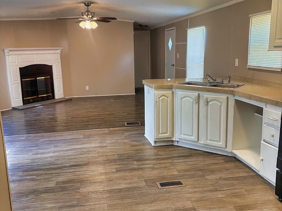 Get cozy in this 2-bed 2-bath split floor plan mobile home. Snuggle up in front of your fireplace or kick back on your shade-covered porch.