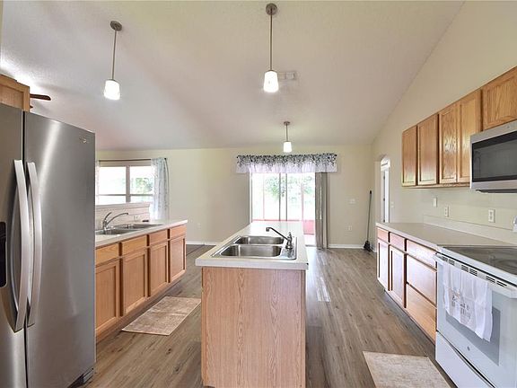 This spacious 4-bedroom, 2-bath home offers over 2,300 sq. ft. of comfortable one-level living in the sought-after Pine Bluff community of Minneola. With fresh paint, updated flooring, and a modern kitchen with newer appliances, it's move-in ready and designed for convenience. The open floor plan features a large primary suite, versatile living spaces, and a bright kitchen that flows into the dining and family areas perfect for entertaining or relaxing. A brand-new AC unit ensures year-round comfort, while the enclosed patio and generous yard provide plenty of room for outdoor living, play, or gardening. Additional highlights include a two-car garage with keypad entry, washer and dryer, and new curtains throughout. Minutes from shopping, dining, schools, and with easy access to the Turnpike, this home is ideally located for a quick commute to Orlando. Families will love the nearby schools and quiet, friendly neighborhood. Whether you're looking to rent or buy, this is a well-maintained home & area that offers the space, upgrades, and location you've been searching for. Don't miss the chance to make it yours!