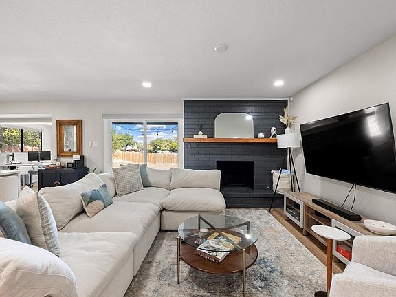 Welcome to this beautifully updated one-story ranch-style home set on a spacious 0.3 acre lot. This thoughtfully renovated residence features a stunning kitchen with shaker-style cabinets, quartz countertops, built-in shelving, and a large breakfast bar making it perfect for entertaining. The open concept layout allows you to cook while staying connected to the living area, where you can enjoy views of the backyard and the warmth of a brick fireplace. The oversized primary bedroom offers incredible flexibility providing ample space for a workout area, home office, nursery, or relaxing reading nook. With stylish finishes, abundant natural light, and a seamless indoor-outdoor flow, this home blends comfort, function, and modern design for everyday living and entertaining.