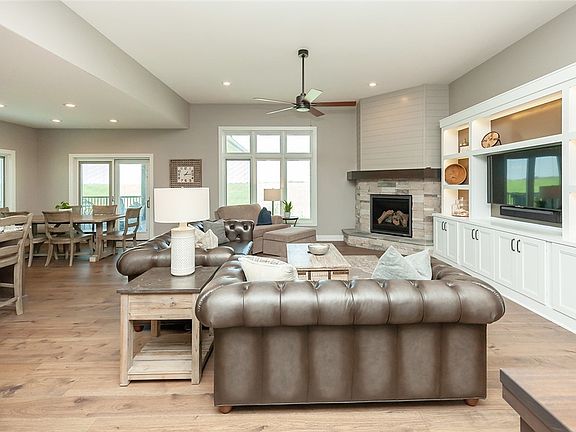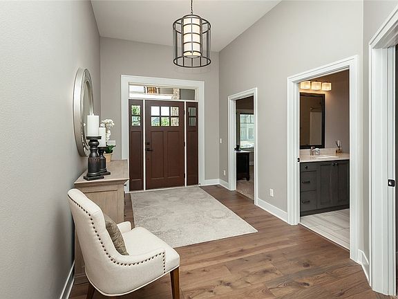 Main floor master has double sinks, rain head shower, heated tile floor and very nice sized master closet which is adjacent to the laundry room. Laundry room also has a wash sink and large bench with hooks and cubbies. Triple heated garage with epoxy floors. The walk out basement has a very large family room with wet bar and oversized storage room. Beautifully landscaped by Country Landscapes