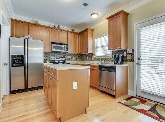 Fantastic Lenox Village Condo with hardwoods on main level, stainless appliances, 2 car garage, private courtyard, computer desk in kitchen, close to playground