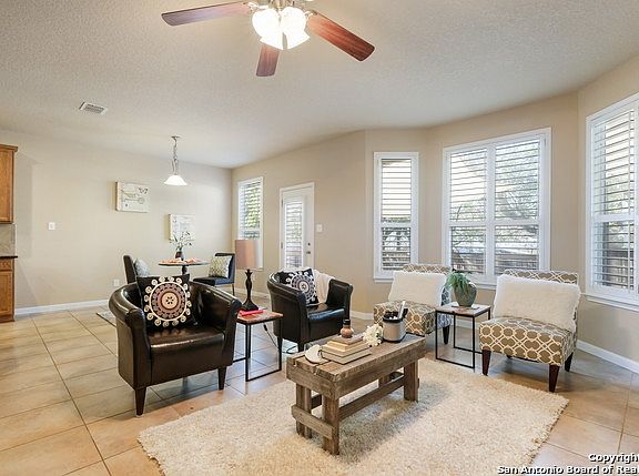 Texas sized home in the heart of Windcrest! Awesome access to restaurants, shopping, highways, and both Fort Sam and Randolph. Nestled in a neighborhood of well maintained homes. Dedicated office for those who find themselves working from home. Separate dining room and an open concept kitchen and family room. Kitchen boasts granite countertops and high end custom pull out drawers in the cabinets for easy access. Upgraded shutters frame several windows. Backyard is entertainers dream with oversized deck and unique canopy covering making it both comfortable and beautiful ! Master is downstairs and has room for seating at the bay window overlooking the yard. Spacious en suite bathroom with separate vanities , garden tub, and large closet. Upstairs find 3 roomy secondary bedrooms and a HUGE game room large enough for game room and movie viewing!